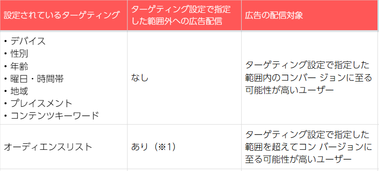 オーディエンスリストを設定している場合は、オーディエンスリストの範囲を超えて配信されるようになります。